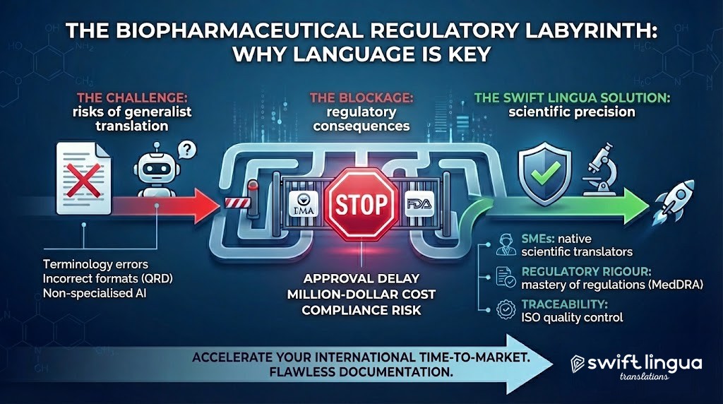 In the biopharmaceutical and Life Sciences sector, a translation error is not a simple “typo”. It is a regulatory block that delays your time-to-market by months, makes costs skyrocket, and puts regulatory compliance at risk.