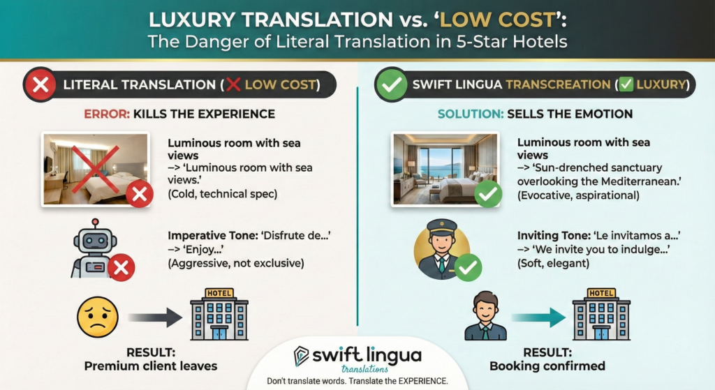 Don’t just translate words. Translate the experience. 👉 Does your website sound like 5 stars in every language? At Swift Lingua, we audit your copy to ensure your international reputation shines as brightly as your hotel. Contact us here.